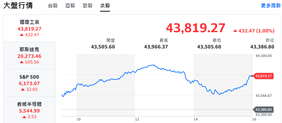 在美中貿易持續進展以及美國聯準會降息預期增溫帶動下,美股上週五(27日)全面收高,道瓊終場大漲432.43點、收43,819.27點;標普500漲幅0.52%、收6,173.07點;那斯達克揚升105.54點、收20,273.46點;費半小漲0.06%;其中標普500指數與那斯達克指數雙雙改寫歷史收盤新高。高