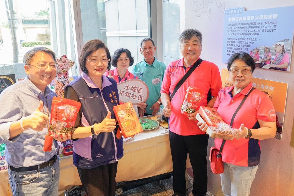 圖說:社會局長李美珍(左2)表示,新北市18個社區發展出獨特的小產業,像是土城平和社區除了花生糖口碑遠傳,油飯也是遠近馳名。