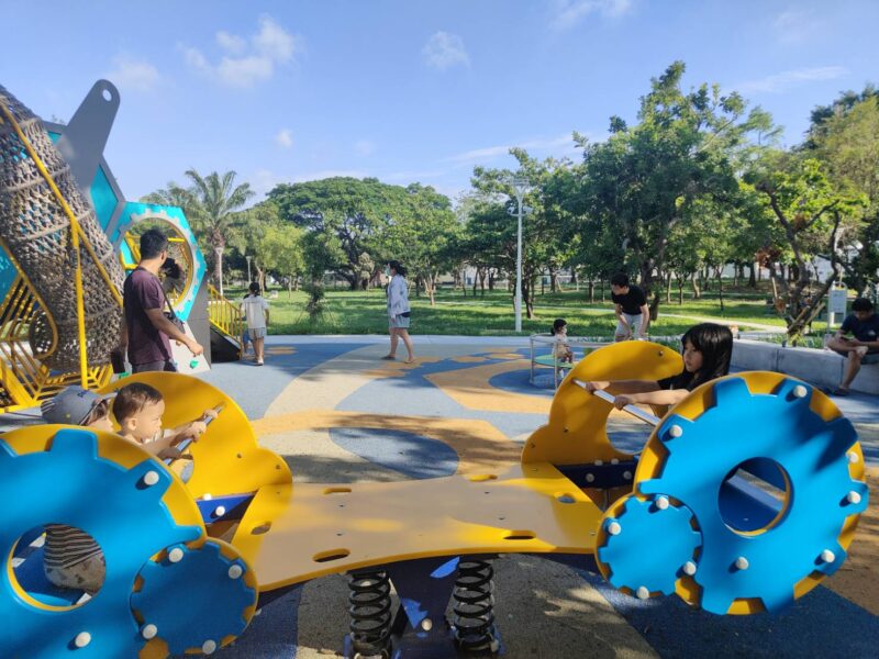 公園處則補充表示,本洲公二公園整體改造以「綠地最大化、整合鄰里空間」為主軸,翻修原有步道系統,強化廣場、休憩及遊戲區的使用機能,同時設置座椅與綠蔭區,提供家長舒適的陪伴空間。有家長帶著孩子來玩時開心表示:「這裡的遊具好特別,跟別的公園不一樣,小朋友一看到齒輪造型蹺蹺板就衝過去了!」