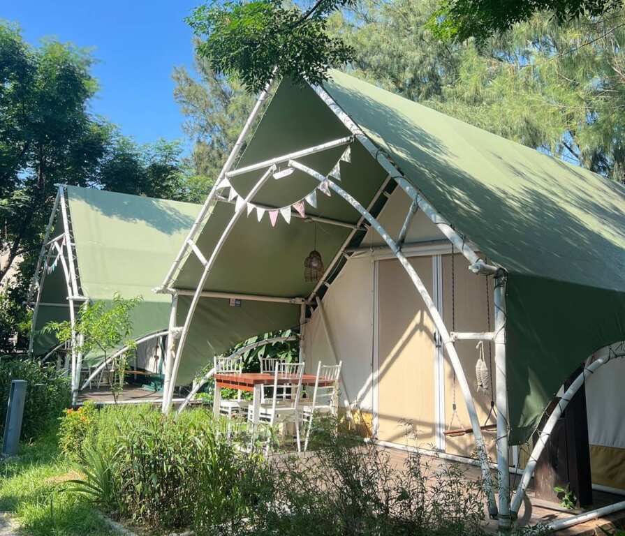 與傳統露營不同,「向海那漾」以飯店式經營理念打造舒適旅宿體驗,帳篷內配備冷氣、床鋪、專屬衛浴,並設有景觀餐廳、輕食吧與香草植物DIY教室、泳池SUP和生存遊戲水槍射擊等,讓旅客無論晴雨都能享受全日的休閒活動。