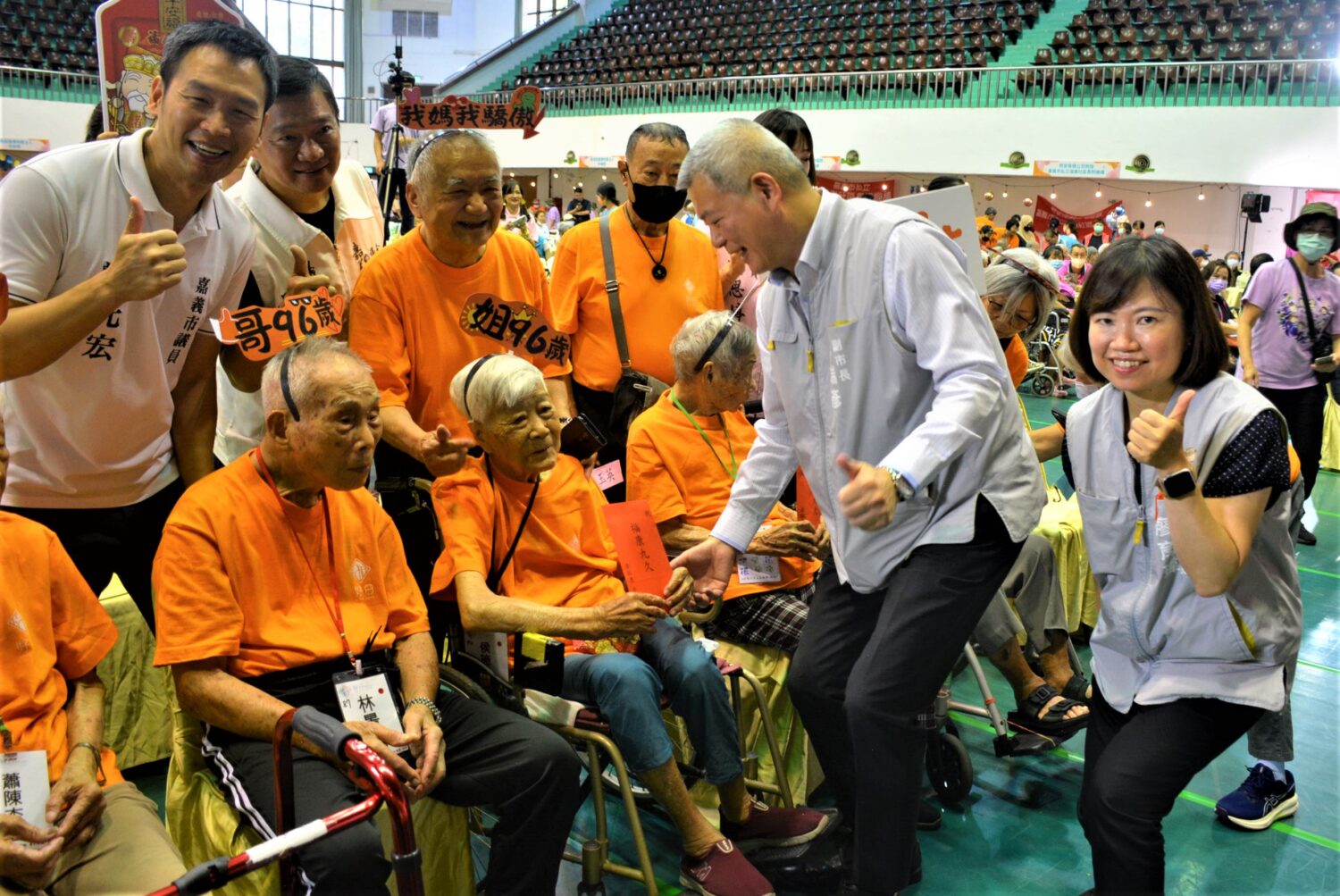 主辦單位今年依民間信仰求「平安符」需過爐的習慣,準備香火袋造型的「平安福米」,並由林瑞彥副市長帶領小橘子幼兒園的小朋友一同致贈給長輩,祈求長輩平安健康、福氣滿滿,林瑞彥副市長同時還致贈「呷百二」紅包為9位95歲以上的長輩增福添壽,其中最高齡為97歲的月英老長輩,現場氣氛熱鬧溫馨,長輩臉上藏不住高興的笑容。