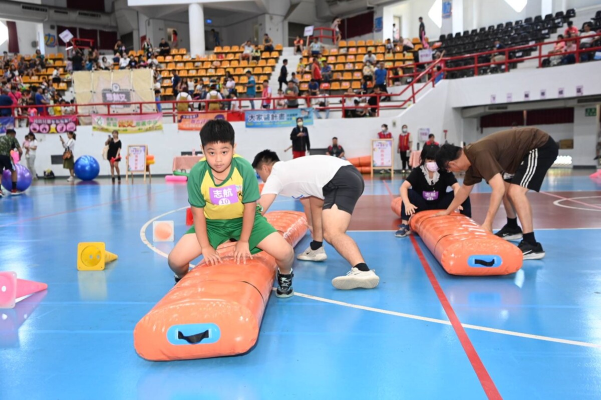 本次活動設計五大競賽關卡,包括:「超大腳丫與背重物賽」、「超級小烏龜」、「強棒出擊」、「同舟共濟」與「動物甩甩樂」,透過闖關形式,全面考驗親子在肌力、核心穩定性、動作協調與團隊合作等多方面的能力和默契。各關卡競賽的前三名將頒獎鼓勵,總獎金高達3萬元,吸引許多家庭踴躍參加,現場氣氛熱烈、歡笑聲不斷,展現親子同樂、動靜兼具的健康活力。