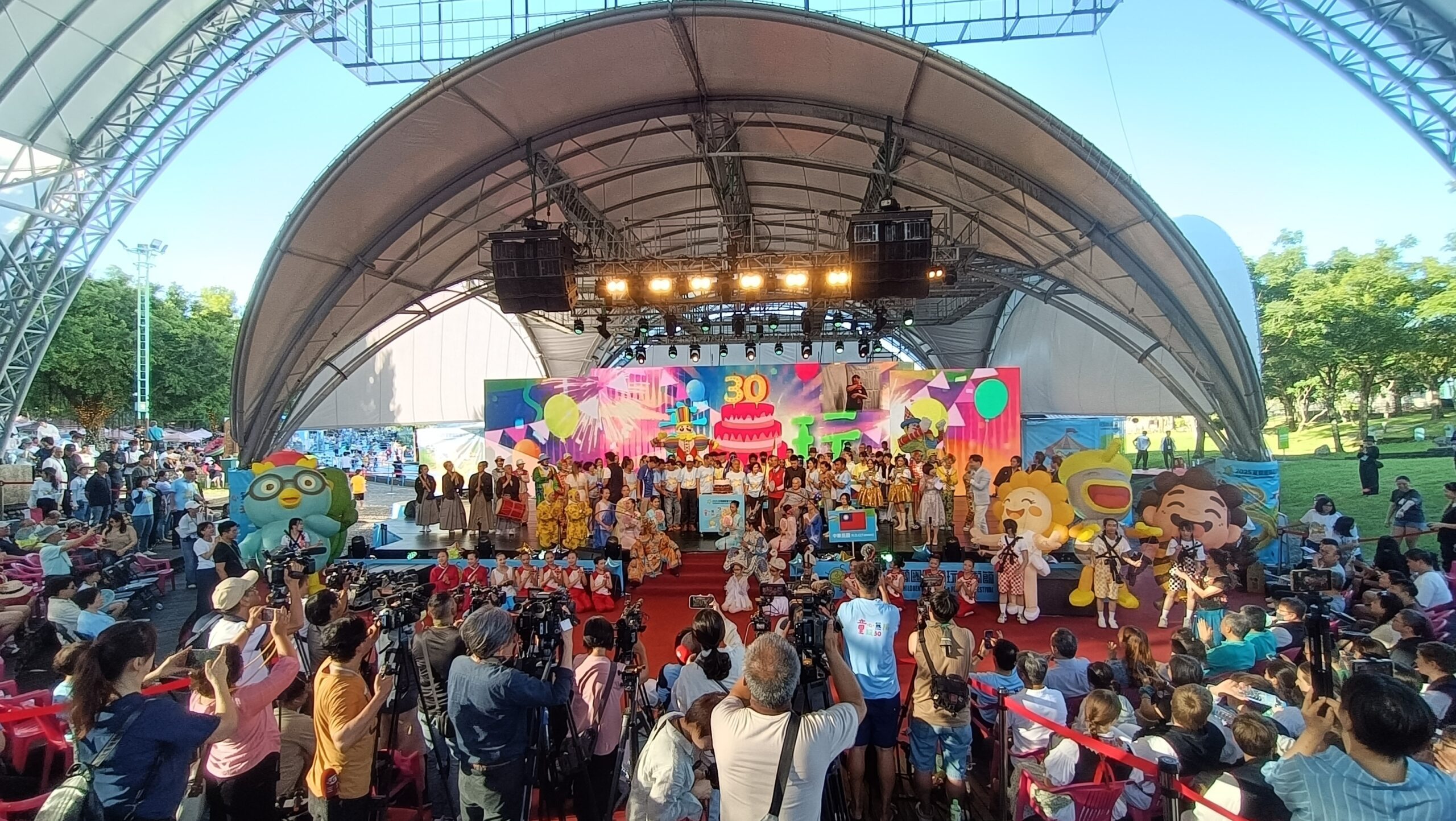 日本豪斯登堡Tenko天鼓與蘭陽戲劇團、舞蹈團的一開場表演,就帶動了全場的氣氛。童玩節30週年,各國的團隊代表包括了匈牙利、土耳其、印度、西班牙、捷克、泰國等,都紛紛上台問候。