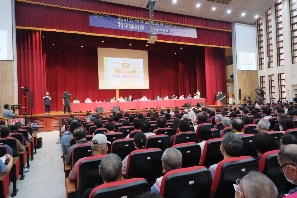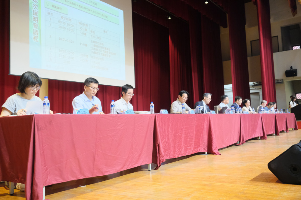 ▲經濟部及新竹縣政府今(7/5)於日縣政府大禮堂辦理「新訂台灣知識經濟旗艦園區特定區計畫」聽證前說明會,經濟部、內政部、陽明交大及縣府等相關單位皆派員出席。(圖/竹縣府提供)