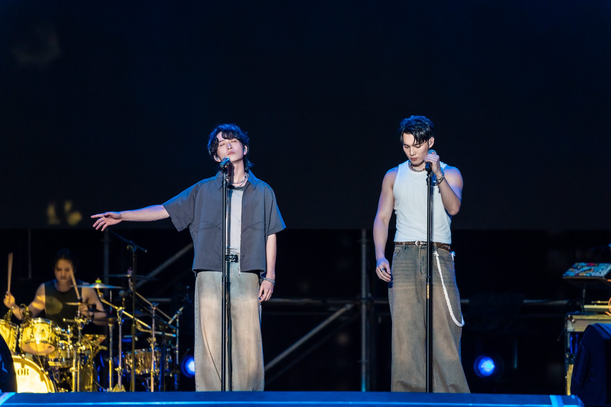邱鋒澤(左起)黃偉晉 照片提供:寬寬整合 接下來接連四組,就是無人不曉的實力派歌手邱鋒澤、黃偉晉、賴晏駒和婁峻碩連番上陣,近期正在合體巡迴的邱鋒澤及黃偉晉組成了雙人樂團,火熱的表演了《永遠永遠》、《潛台詞》等歌,還翻唱的告五人的《愛人錯過》等一連串膾炙人口的組曲。賴晏駒帶著舞者大批人馬的緊接上台,帶來了自己的主打歌曲《乾我什麼事》、《娘娘槍》等歌曲,台下的氣氛已跟著小賴的誘惑大家同樂的搖擺著身體。雖然已是人夫的婁峻碩,魅力毫無影響,最近戲劇部分才 剛殺青,復工的第一場大型活動就獻給了高雄啤酒節,以搖滾的風格演唱了《NEVERLAND》、《鑰匙還你》 等歌,整大段的表演讓台下粉絲們超級值回票價。