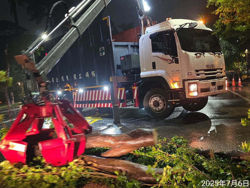 颱風期間,臺南市陸續出現路樹倒塌、廣告物傾斜或掉落等情況。工務局在接獲通報後,立即出動人車趕赴現場處理,包括修剪及移除倒伏路樹,處理掉落和搖搖欲墜的廣告招牌,以迅速復原市容環境,保障市民安全。