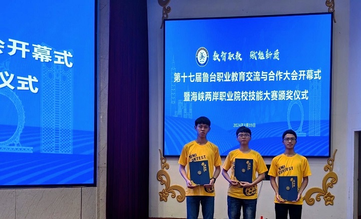 ▲劉毅安(左)、楊又霖(中)與呂宗恩(右)出席魯台交流活動的頒獎典禮,並接受濰坊市市長親自頒獎。呂宗恩以統測國文作文滿分展現優異的語文表達力,在資安技術、電子實作、文化素養與管理等多元領域亦累積超過10張跨域證照,其中在 Cyberspace 資安競賽中更連續兩年獲獎,展現堅強的自學能力與實戰實力。他自訂每年培養一項新專長的目標,曾涉獵紫微斗數、股票投資等領域,學習範圍橫跨文理。