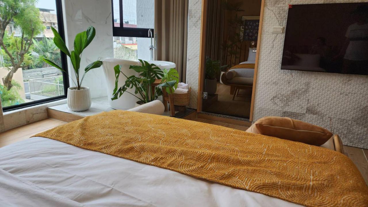 民宿內共有五間風格各異的客房,從摩洛哥赭紅色系,到綠意宮廷風、幾何高爾夫磁磚等,每一間皆以義大利進口磁磚與開放式浴缸為主軸設計。寬敞空間中設有歐式木質吊扇與間接照明,使房內氣氛既浪漫又富有設計層次。