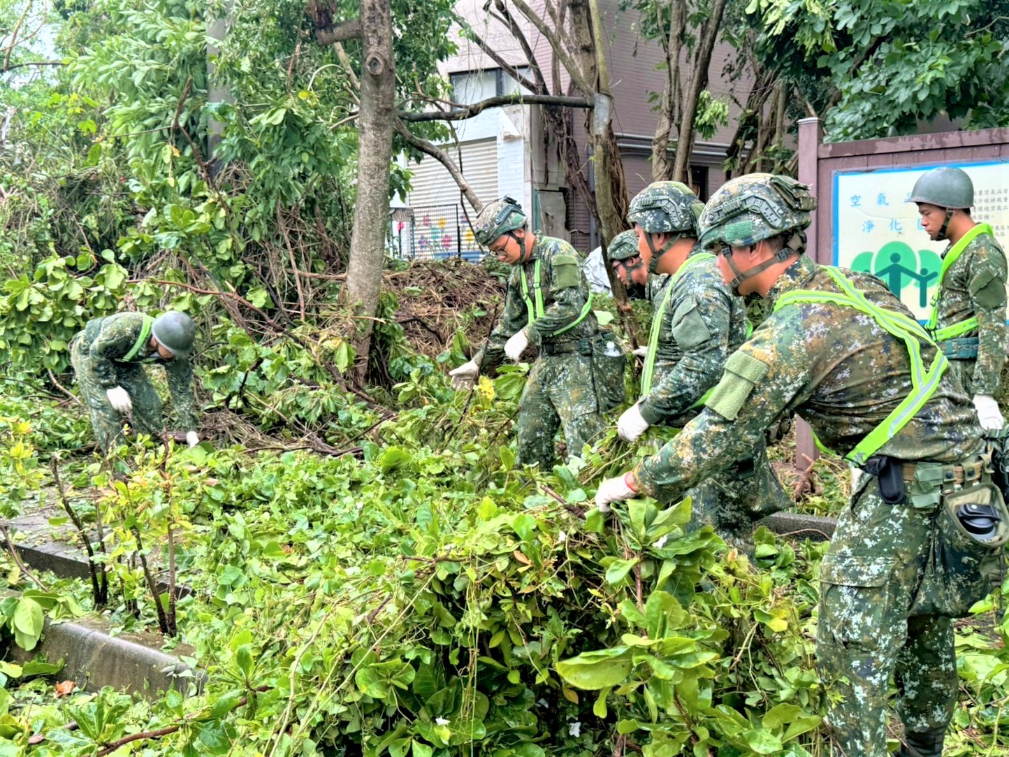 南測中心指揮官邱之峯少將表示,年度漢光演習實兵演練在即,該中心除專注於戰訓本務外,也不忘苦民所苦,派遣部分兵力前往嘉義縣、市多處災區,支援傾倒路樹清除及大型廢棄物搬運作業,希望在最短時間內,期迅速恢復道路通行與市容整潔及校園正常運作。