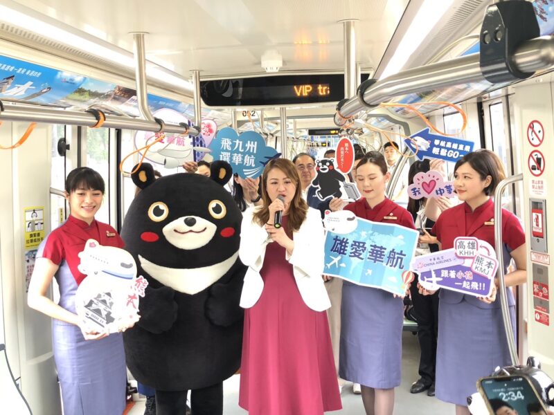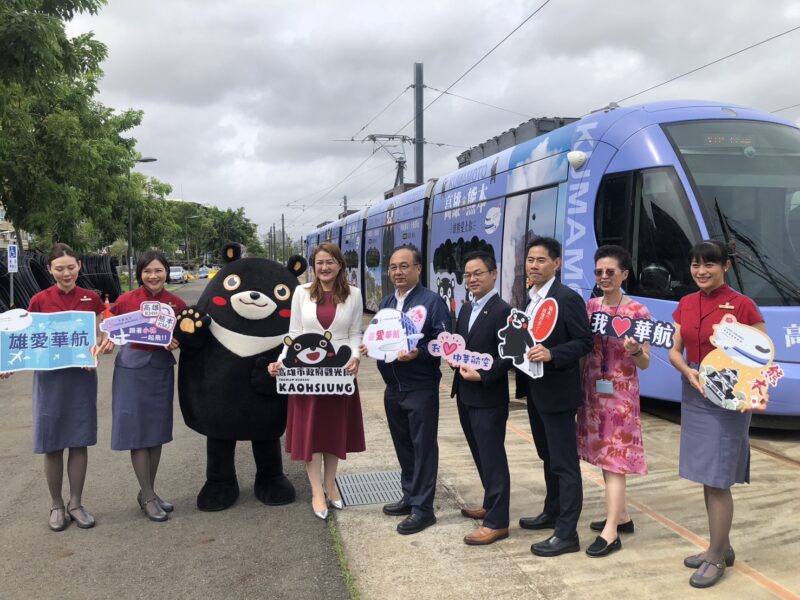 中華航空持續深耕南部市場,特別為「高雄-熊本」直飛航線打造全新宣傳亮點, 與日本熊本縣攜手推出「雄熊愛上你」主題彩繪列車,7 月 10 日至 8 月 8 日期 間行駛於高雄輕軌,萌遍南台灣!