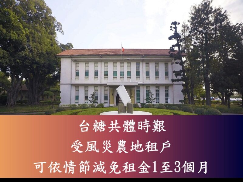台糖表示,凡符合農業部公告之農業天然災害現金救助及低利貸款地區的土地承租戶,可向所在地的鄉鎮區公所申請災損證明,並將證明提交至台糖土地轄管單位。台糖將依據作物受害程度給予減免:受害率20%至40%者,免租1個月;40%以上至未達60%者,免租2個月;超過60%者,免租3個月。如遇特殊情況,還可根據具體事實研議延長減免期。若已繳納租金,可選擇留抵次年度租金或依減免月數延長租期。