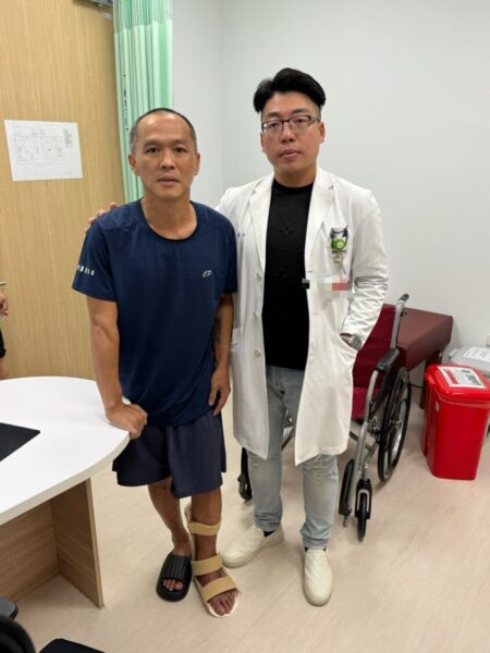高雄秀傳紀念醫院院長吳明和教授表示,術後傷者進入積極的復健療程,由復健科與物理治療師每日到床邊指導,包括關節的被動與主動運動、肌耐力訓練、從床上移位到輪椅的技巧訓練,以及後續使用四腳助行器的步態訓練。經過細心療養與持續復健,不僅能使用助行器行走,甚至能安全上下樓梯,生活自理能力大幅提升。再高秀醫療團隊的照護下,傷者恢復良好,意識清楚、行動穩定,並於7月5日順利出院,家屬也對吳明和院長所帶領醫療團隊的積極照護由衷感謝。
