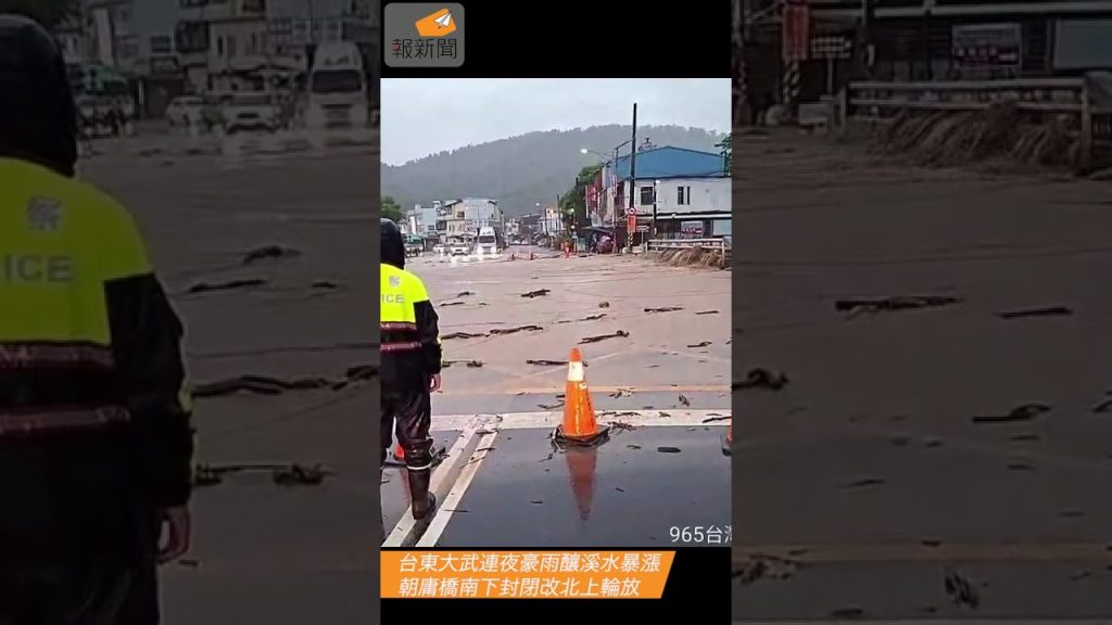臺東縣大武鄉尚武村因連夜大雨,朝庸溪溪水暴漲,淹沒橋面,大武警分局獲報,立即派員前往交通管制,並封閉南下車道,改以北上車道輪放通行,相關資訊如下: