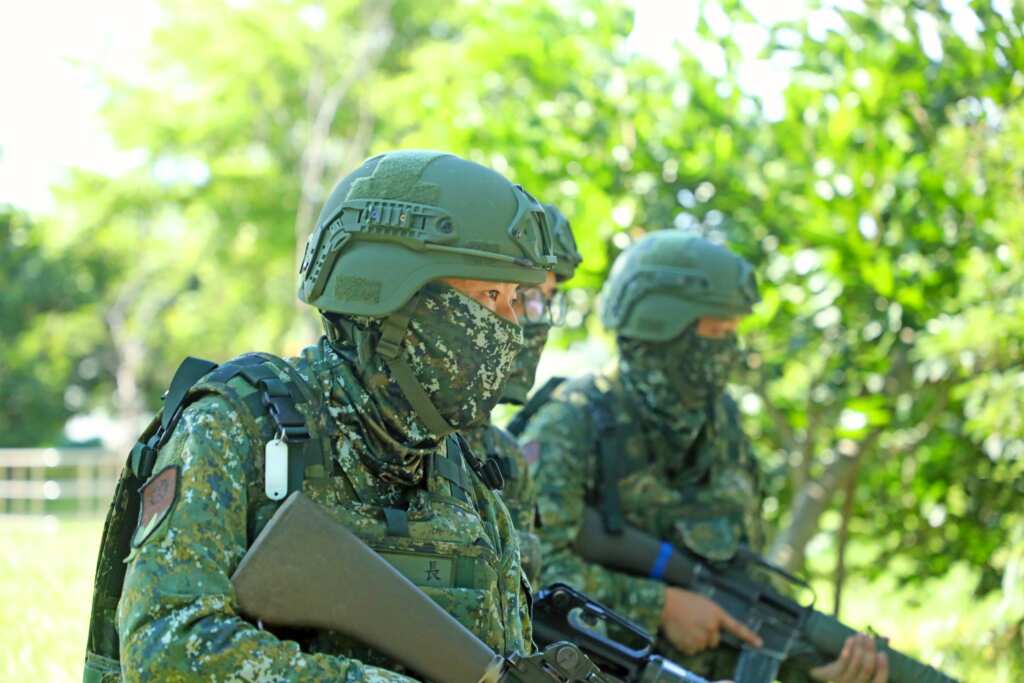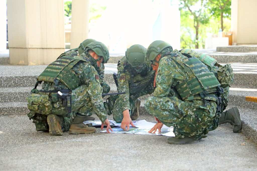 在連隊幹部實戰化指導下,召員們在烈日下汗水淋漓,面對各種突發狀況下達,依然沉著應對,變換各種戰鬥姿勢及隱掩蔽,除展現專長複訓及臨戰訓練成效外,也展現後備軍人捍衛國家安全的信念,以強化整體防衛戰力。(第三作戰區提供)