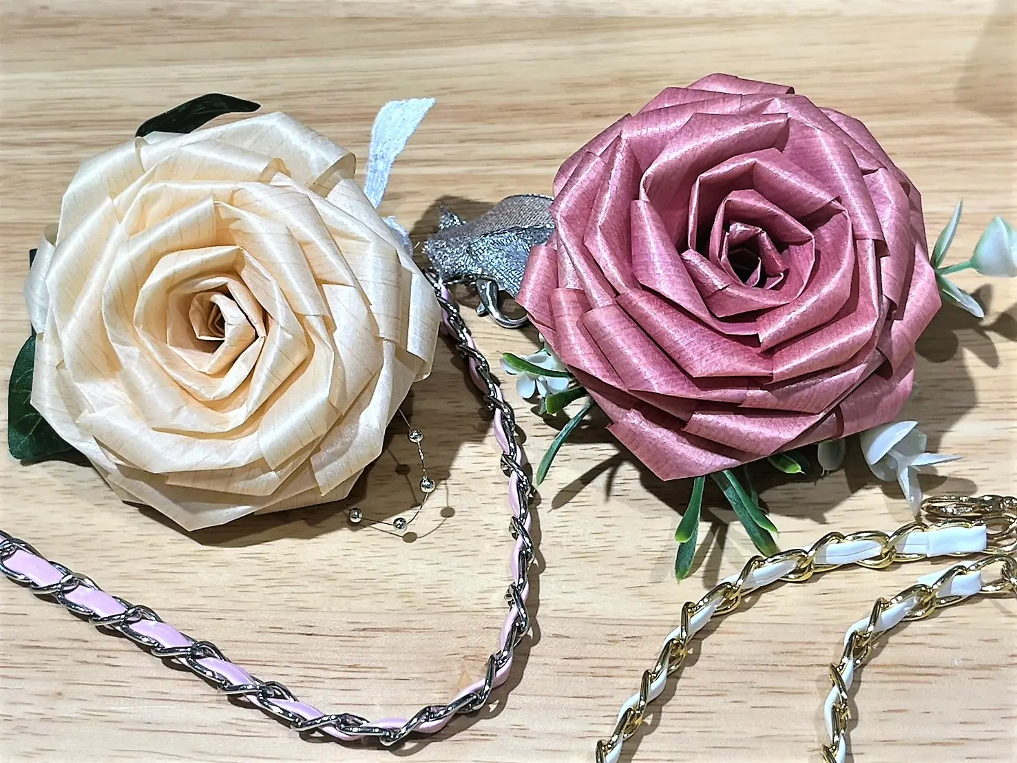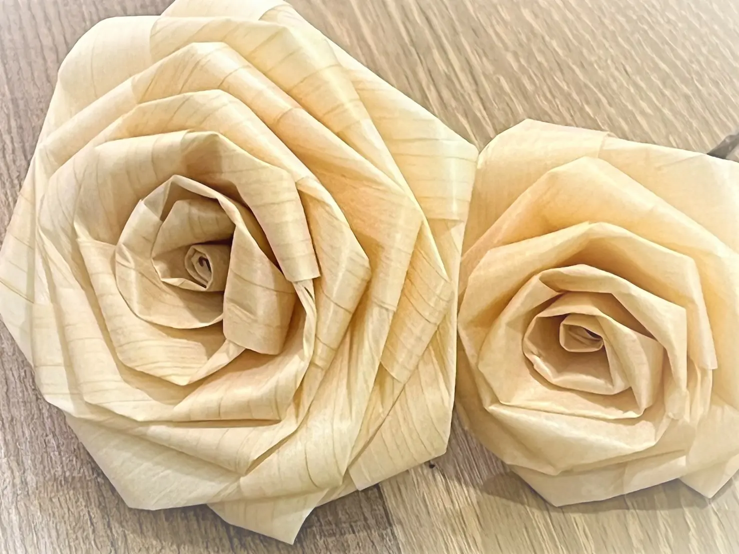 一片一片用心編織的檜木玫瑰花,即使用手碰觸,花瓣也不易變形,除了賞心悅目,乾燥的檜木香味較細微,噴些水會使一些氣味恢復,或者噴灑含有檜木萃取物的「檜木水」時,更能享受怡人的氛芳香氣。除了長期觀賞過程,色澤也會逐漸轉為橘紅色,也可以隨著色澤的變化,長時間地細細品味與享受它的魅力。
