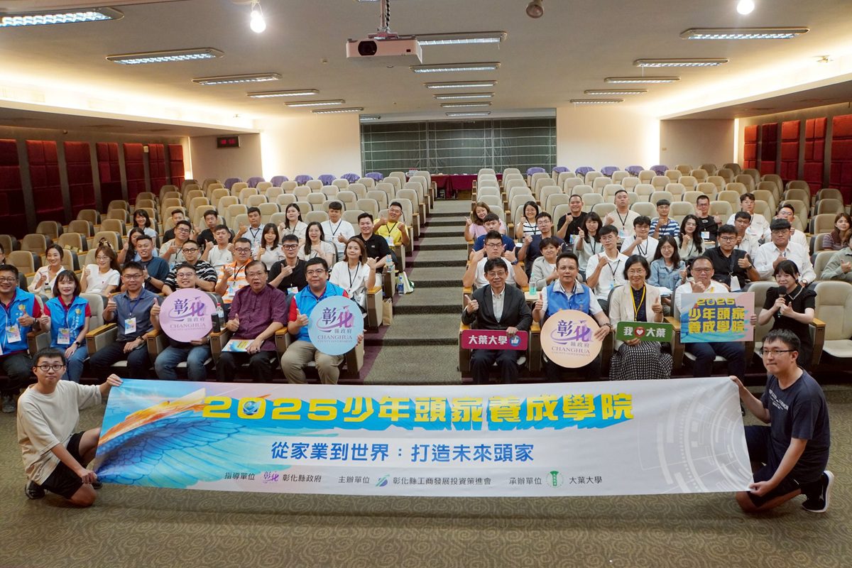 由彰化縣政府指導、彰化縣工商發展投資策進會主辦、大葉大學承辦的「2025少年頭家養成學院」,7月16日晚間在大葉大學舉辦開訓典禮,彰化縣工商發展投資策進會總幹事洪榮章、彰化縣卓創精英會理事長鄭曉愉、彰化縣青年全球匯聯盟秘書長葉建偉等人都親臨現場,為即將展開訓練的年輕經理人加油打氣。