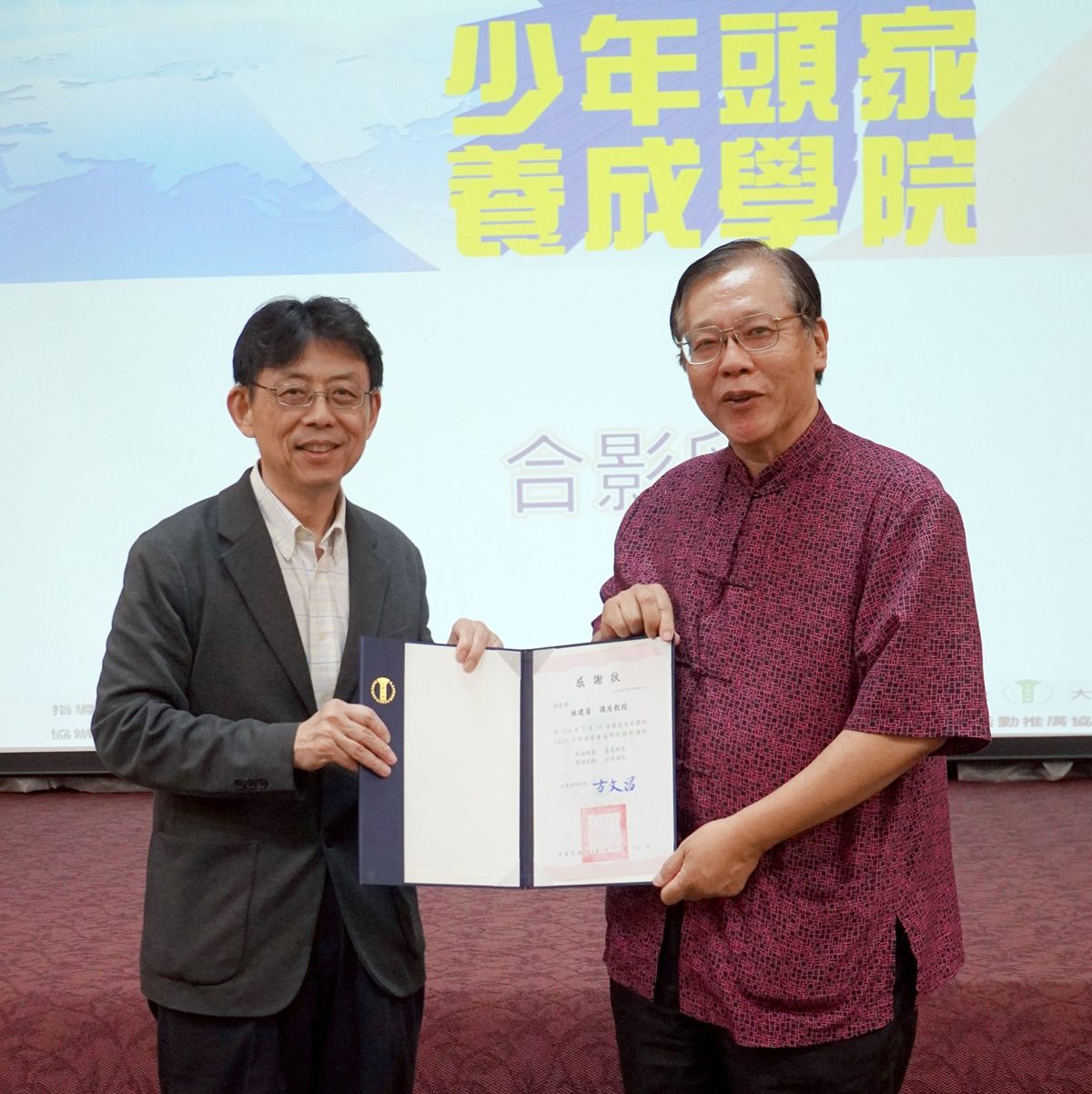 ▲大葉大學方文昌校長(左)頒發感謝狀給林建甫講座教授(右)。(圖/大葉提供)
