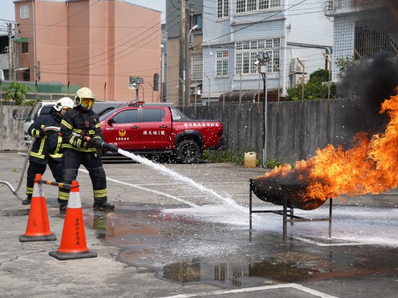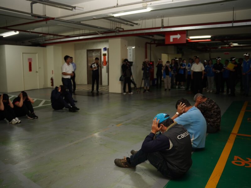 楊文科指出,新竹縣共有1418處防空避難設施,可容納181萬人,防空避難設施都已經設置了新式的防空避難標示牌,只要下載「警政服務」APP、「消防防災e點通」APP,就能查詢距離最近的防空避難設施來提升全民的防空應變的能力。