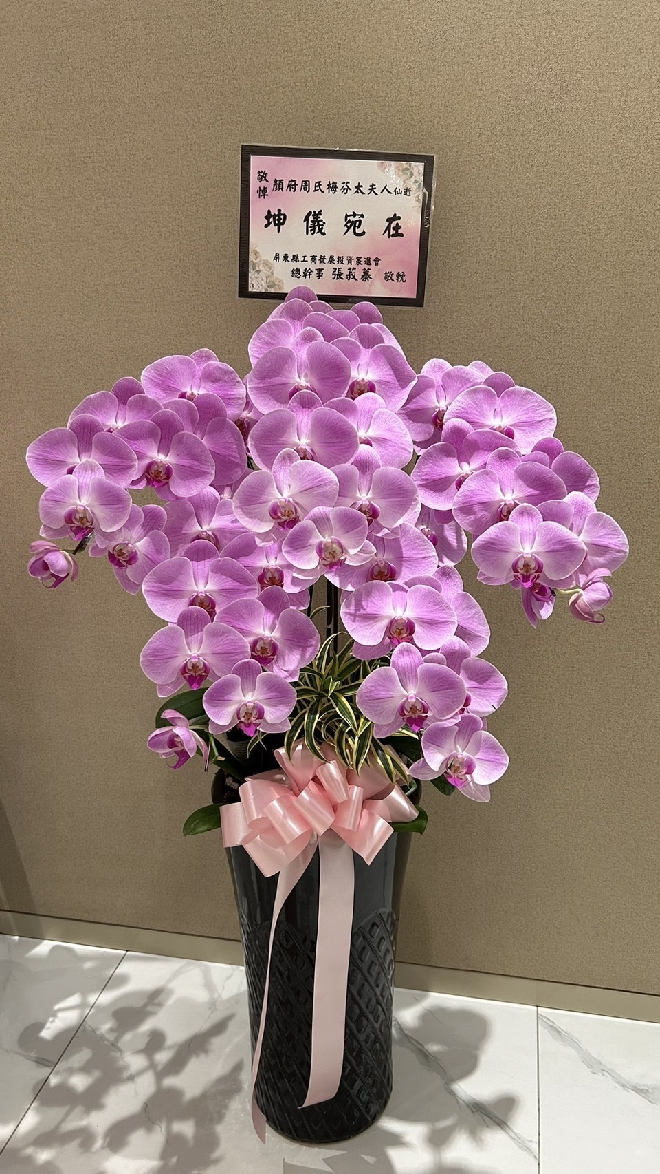 此外,蘭亭花坊還提供專業的蘭花照護建議,例如避免擺放在薰香環境,以免過早凋謝,並且細心地將照護要點文字訊息發送給顧客,確保花禮能夠長時間保持美麗。