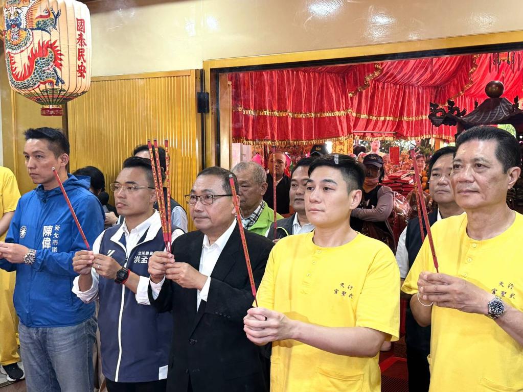 圖說:今(18)日適逢農曆廿四號關聖帝君聖誕,新北市長侯友宜首站來到淡水行天武聖宮參拜祈福。