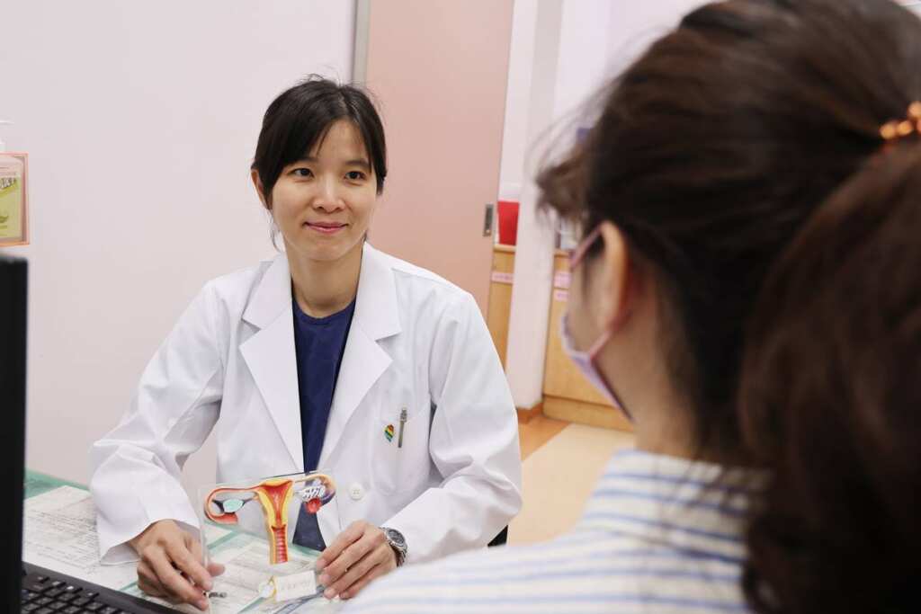 ▲台中榮總婦女醫學部醫師孫珞提醒,女性更年期後若有不正常出血,不論出血天數或血量,一定要盡快就醫檢查。(圖中病患非新聞個案/台中榮總提供)起初李小姐至診所,超音波檢查發現子宮內膜增厚,先服藥物治療,但出血未改善,轉診至臺中榮總,切片診斷為子宮內膜癌,須手術切除子宮、卵巢及骨盆淋巴腺治療。