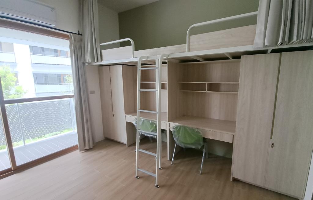 入住東寧宿舍6人房的周同學說,之前住過勝二、勝八宿舍,一路看著東寧宿舍動工、興建,逐漸完成今日樣貌,心裡很有感,當時就興起住東寧宿舍念頭,入住後覺得宿舍內設施嶄新、空間乾淨,給人耳目一新住宿體驗。