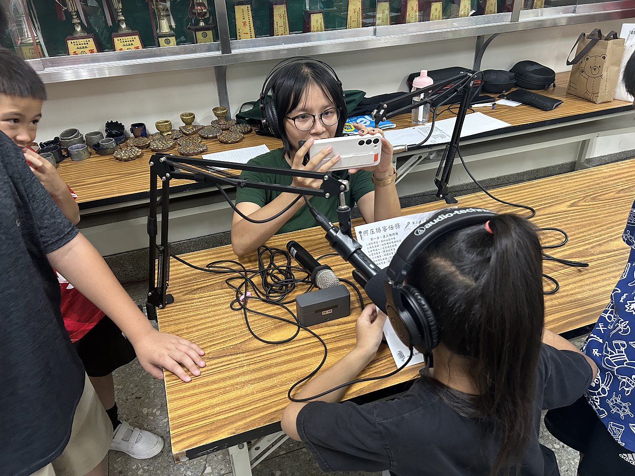 下午的課程則將孩子們推向聲音的前線——從得分城市桌遊出發,以小組隊伍的方式進行節電遊戲,看見一座城市當中電力資源的各種可能;再到東森電視吳欣玫記者介紹採訪實務,最後由播客實作導師配魚saysay節目主持人暨586焦點傳媒的侯姵伃帶領,學員們學習腳本撰寫、聲音表達與主持技巧,將上午的觀察與體驗,轉化為一段段Podcast內容,孩子們不再只是環境議題的接受者,而成為訊息的生產者、社區的說書人,這些「小主播」的聲音作品,雖尚稚嫩,卻飽含觀察力與對土地的情感。