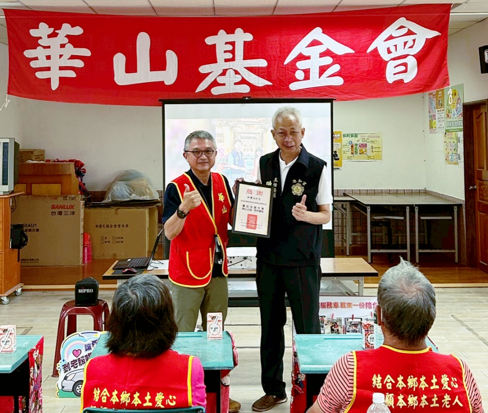 池和宮陳昱成主委長期支持華山基金會服務,捐贈大量物資與善款,並同意設置發票箱、海報宣傳華山各項公益行動,並協助弱勢長者申請急難救助;在得知車輛需求後,主動提供宮廟空間、邀請委員及社區代表出席說明會,推動募集「到宅服務車」。