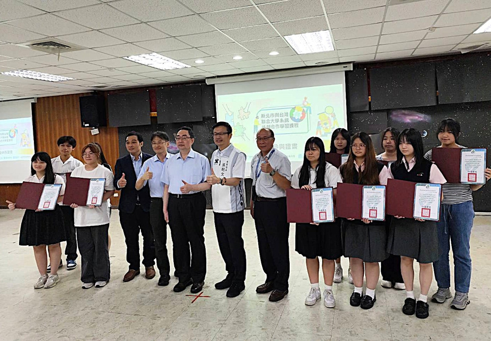 (大成報記者張玉玲/新北報導)為幫助高中生探索興趣,找尋未來適性升學與職涯方向,新北市教育局今(25)日與「台灣聯合大學系統」(中央、政大、清大、陽明交大)攜手合作,舉辦「共創學習計畫學生成果發表會」,展現新北領先全國打造高中與頂尖大學共創學習機制的豐碩成果,打破學制界線實作學習,拓展跨域視野與行動力。