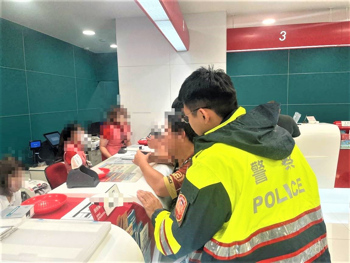 經深入詢問後發現林男對於交車地點陳述含糊不清多次更改,另後續對於實際款項用途也支吾其詞前後矛盾,員警希望林男能提供欲購買車輛之相關資料或相關聊天對話紀錄供確認,更能保障財產安全,惟林男稱無法提供,員警判斷有可能遭詐,懷疑詐騙集團可能有教導如何規避警方及銀行人員的提問,員警便趕緊向林男宣導各式各樣「詐騙」的相關案例,若執意提款可能會造成損失,最終林男才恍然大悟驚覺自己可能遭詐騙,取消提款之念頭並頻向員警道謝,感謝警方及銀行人員及時阻詐,讓其免受損失。