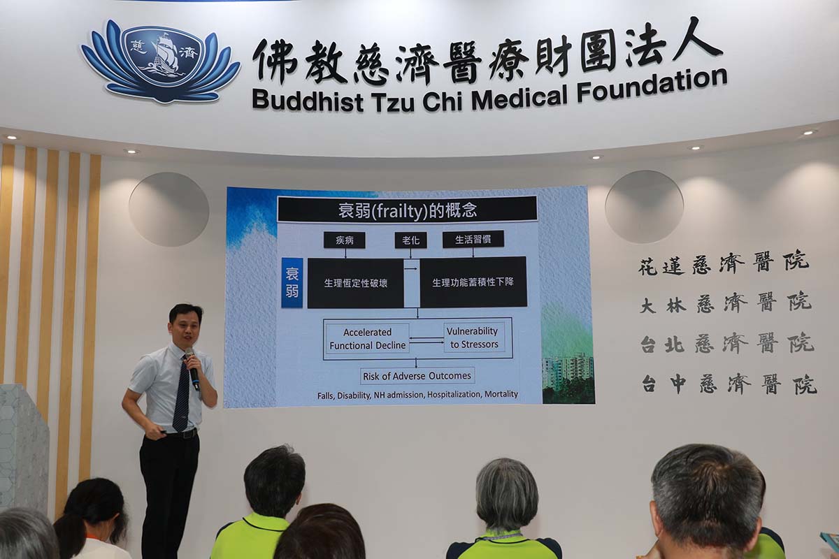 ►大林慈濟醫院老年醫學科主任張舜欽以「呷老愛五力」為題,分享預防衰弱與維持功能的高齡照護策略。