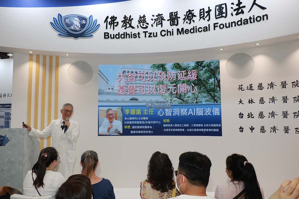 慈濟醫療體系在高齡健康產業博覽會提供AI腦波儀檢測,協助評估失智及腦部退化風險!隨著人口結構快速高齡化,預估至2041年,全國65歲以上失智人口將逼近68萬人,其中約半數是輕度階段,正是干預黃金期。大林慈濟醫院老年醫學科主任張舜欽則以「呷老愛五力」整合照護模式,幫助老人對抗衰弱。