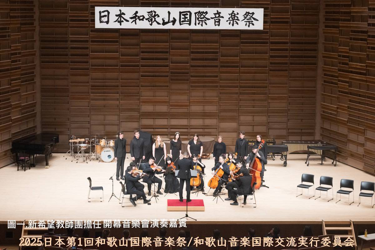 ▲新希望教師團獲邀擔任音樂節開幕演奏嘉賓本屆音樂節由和歌山市政府主辦,吸引超過900位來自全球的音樂人參與。新希望樂團在指揮施宇綺老師帶領下,以穩健默契與細膩詮釋獲得評審高度肯定,榮獲團體組銀賞,由和歌山市副市長犬塚康司與副議長西風章世親頒獎,場面隆重。