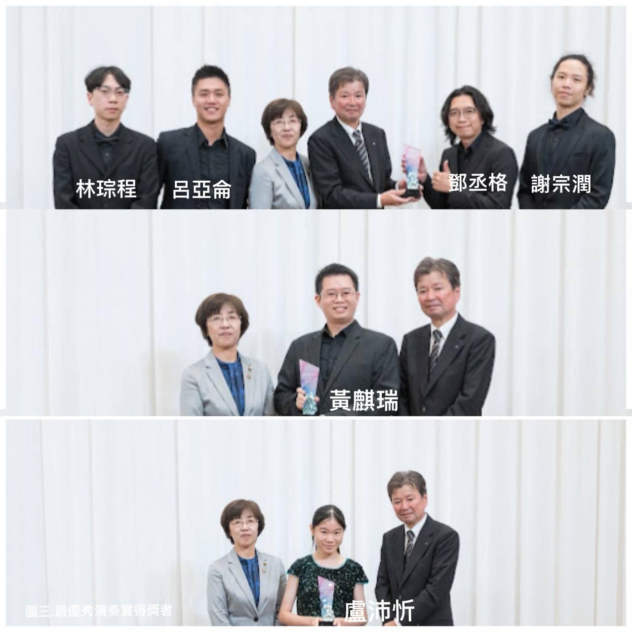 最令人振奮的是,大會最終由十位日本權威評審選出全場僅八名「最優秀演奏賞」得主,高雄新希望樂團便囊括三席,包括光武國中盧沛忻、黃麒瑞老師與男團教師四重奏,為本屆音樂節奪得最多最高榮譽席次,實力驚艷全場。