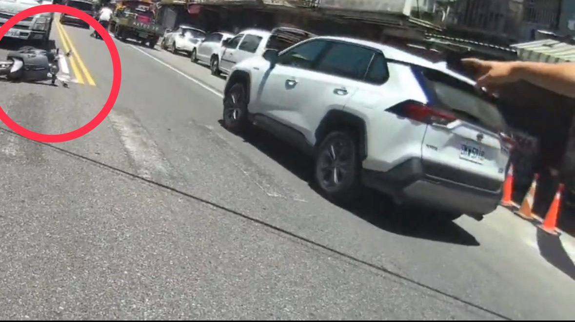 謝姓男子(紅圈內左)與童姓男子(紅圈內右)當街打鬥。翻攝畫面