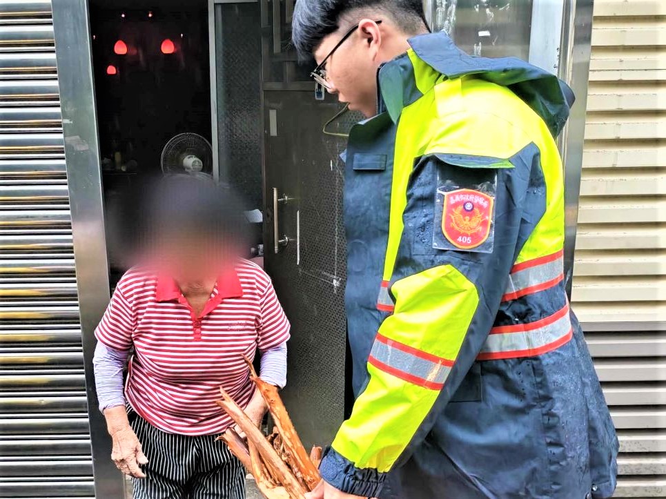 經抵達趙老婦人住處後,警方協助將木材搬入屋內,讓趙老婦人盡快進屋避雨。趙老婦人對於警方在風雨中及時伸出援手深表感激,頻頻向警方表達感謝之意。楊員返回派出所後,亦主動聯繫趙老婦人的家屬,告知上述情事,其家屬表示趙老婦人有失智症狀,往後會多加注意趙老婦人的身體狀況,並對警方將趙老婦人平安載返家一事,表示警方的熱心協助。
