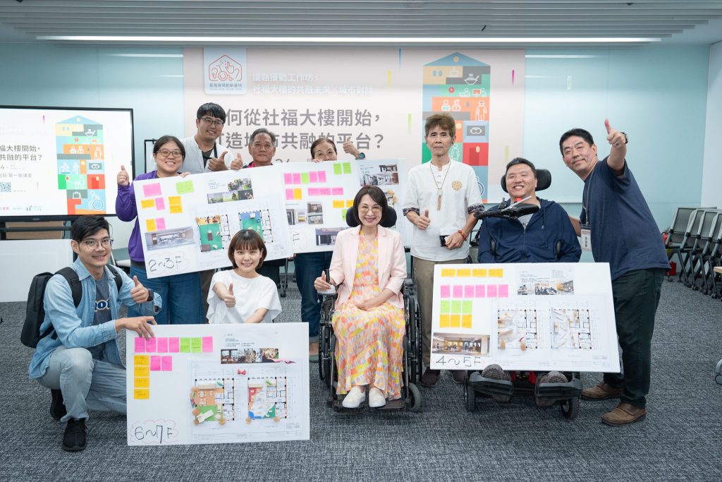 本次工作坊以「參與式設計」精神探索基隆社福大樓的未來角色,邀請松山文創園區總監趙釧玲、無障礙暨社福領域專家簡明山,與深耕基隆在地社區營造的建走共創整合有限公司負責人吳宜晏等三位不同領域講師,引導學員討論基地「資源串聯」、「社區共融」與「空間行銷」等三大面向議題,分組規劃行動方案並進行成果發表。各組學員發揮創意以手作模型、便利貼與海報呈現對於大樓服務體驗的想像與期待,並有學員融入五感體驗設計共融流水與香氛環境,現場更邀集基隆在地資源單位與外部專家與會交流,充分展現共融共創的力量。