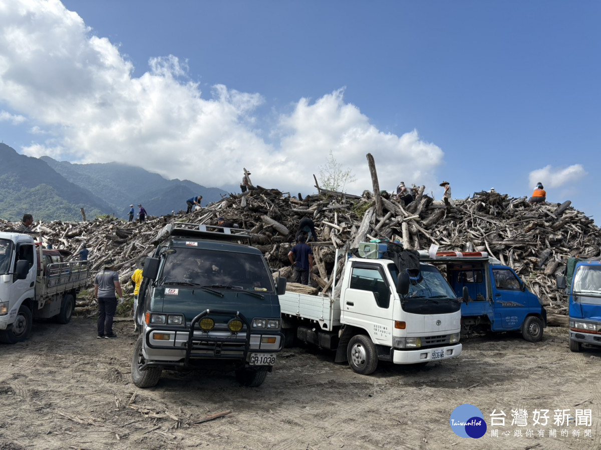 林業及自然保育署新竹分署說明,本次開放自由撿拾地點位於經濟部水利署北區水資源分署管理阿姆坪臨時堆置場,現場僅限一般轎車及3.5噸以下貨車進場,不開放使用機具撿拾,貨車加裝吊掛機具亦不得進場,但可以攜帶工具進行裁切。