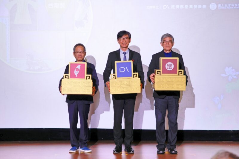 ▲「匠心臺灣.百年新藝」MIT×故宮聯名專區正式啟動。圖左起:中衛發展中心謝明達董事長、產業發展署邱求慧署長、國立故宮博物院黃永泰副院長。(圖/中衛發展中心提供)