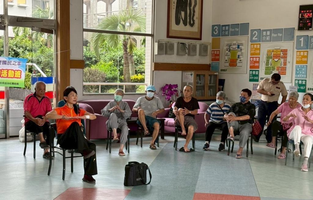 藉由樂齡學堂小型團體活動,由卿卿音樂輔療師,帶領住民學員,唱著朗朗上口〈望春風〉,引導長輩活動筋骨,增進身體各部位動作協調,透過「音樂照顧」活動,讓住民學員們使用「竹棒」,合奏世界名曲與懷舊音樂,讓參與活動住民學員,培養共同興趣及滿滿成就感,音樂活動-不僅提升住民學員人際互動,達到自我信心、自我肯定與認同感。