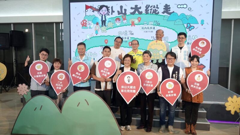 彰化縣政府城市暨觀光發展處長王瑩琦表示,活動分3個時段開放報名。自9月1日起開放報名的有:9/13挑水古道(芬園鄉)、9/27桃源里森林步道(彰化市);自10月1日起開放報名的有:10/18天空步道(彰化市)、10/25田中森林公園登山步道(田中鎮);自11月1日起開放報名的有:11/8大嶺巷步道(花壇鄉)、11/15長青步道(社頭鄉)、11/22藤山步道(員林市)、11/29坑內坑步道(二水鄉)。活動官網:https://baguashan2025.mystrikingly.com/、報名網址:https://lin.ee/Foe6htE。