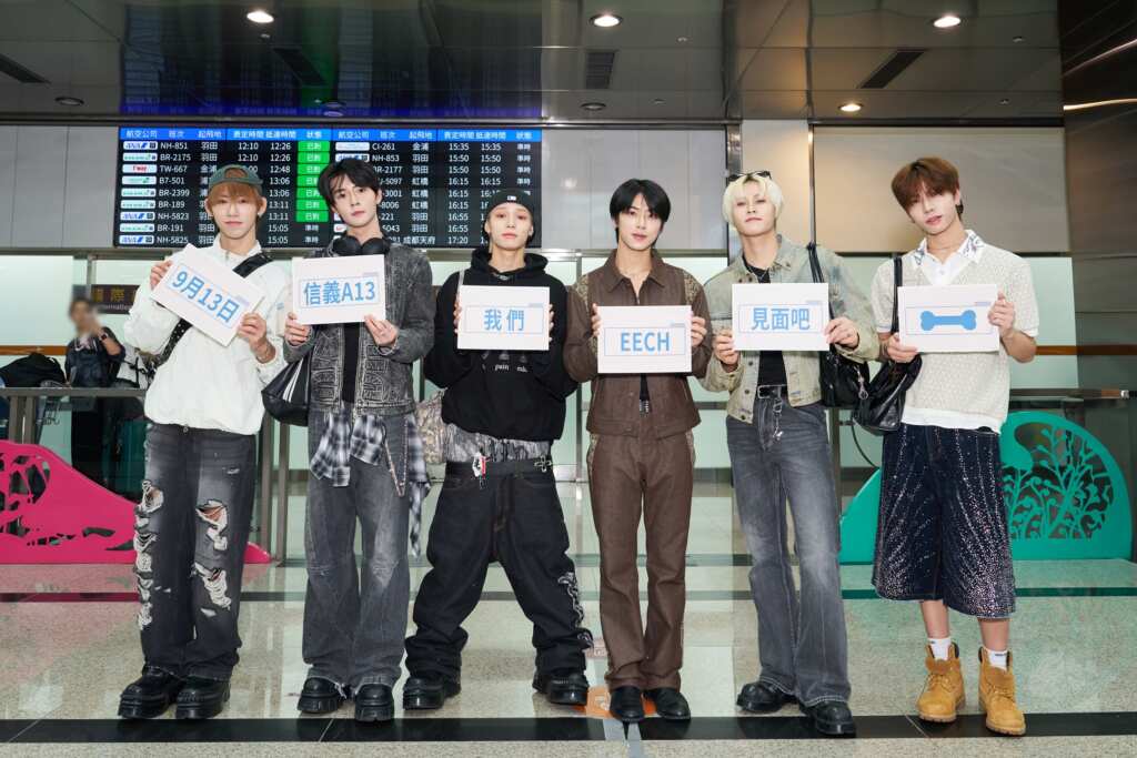 ▲SEVENTOEIGHT返台遇粉絲接機(左起:EXXI义翔、學駿、D’OM、麒文、 美祥M、JAGGER柏佑)(天空娛樂提供)為了感謝粉絲的熱情在機場應援,SEVENTOEIGH特別在出關前每人特別備著一張卡片,以字卡「逆應援」方式給粉絲驚喜,只見六人舉著「9月13日信義A13我們EECH(一起)見面吧!」預告接下來將在台北信義區香堤大道辦見面會的活動,讓現場粉絲開心尖叫,高分貝聲量幾乎掀翻機場屋頂!除了每個人事前D.I.Y字卡外,六人還為了與久違的粉絲重逢見面,還特別抽空在韓國小小地shopping買了新衣服,並在上機前梳妝打扮、把自己狀態調整到最好,以嶄新及帥帥的一面現身在粉絲面前,也意外展現出屬於SEVENTOEIGH的「機場時尚」風格!