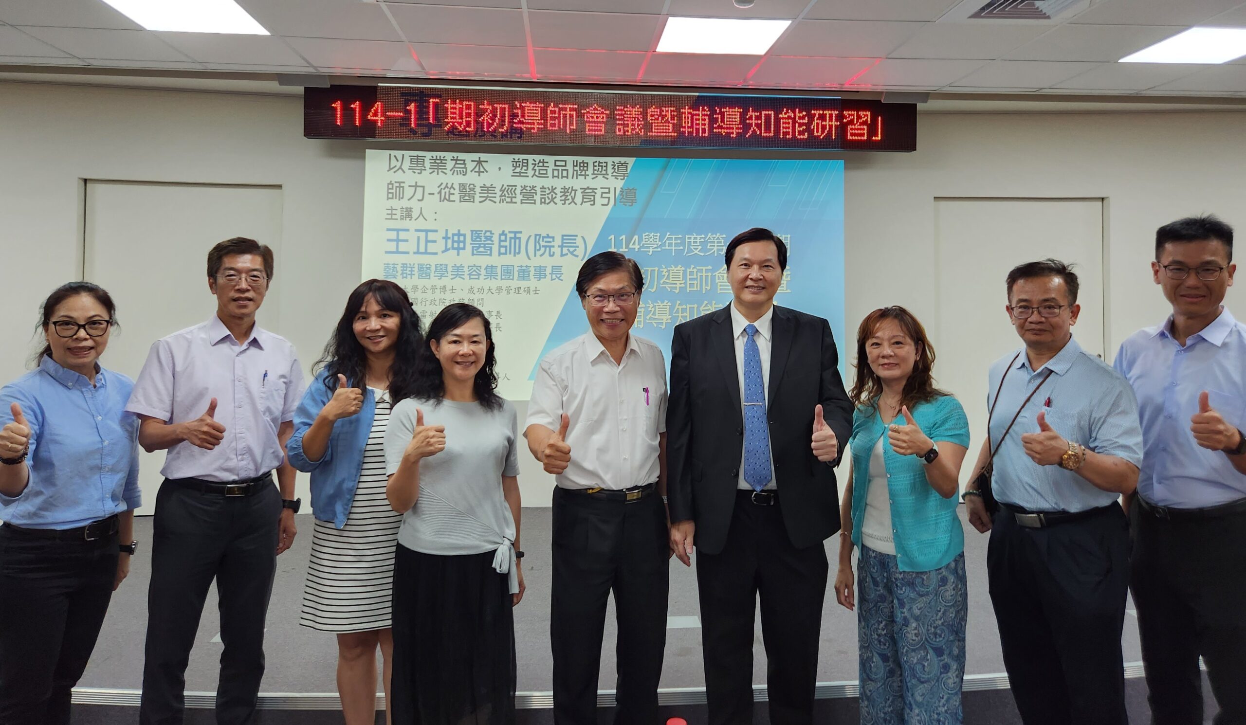 敏實科技大學於 9 月 2 日 下午舉辦「導師會議暨知能研習」,敏實科大曾信超校長邀請藝群醫學美容集團董事長王正坤醫師演講,主題為「如何打造藝群醫美集團品牌-以醫學知識為核心」,與全校老師分享如何在診所勤辦醫學教育20年,如何快速展店21家連鎖診所,如何永續傳承最新醫學知識與預防醫學美容副作用,並由曾信超校長頒發感謝狀,王正坤醫師以專業為本,建議大學老師塑造品牌與導師力,從醫美經營談教育引導,積極培育人才。