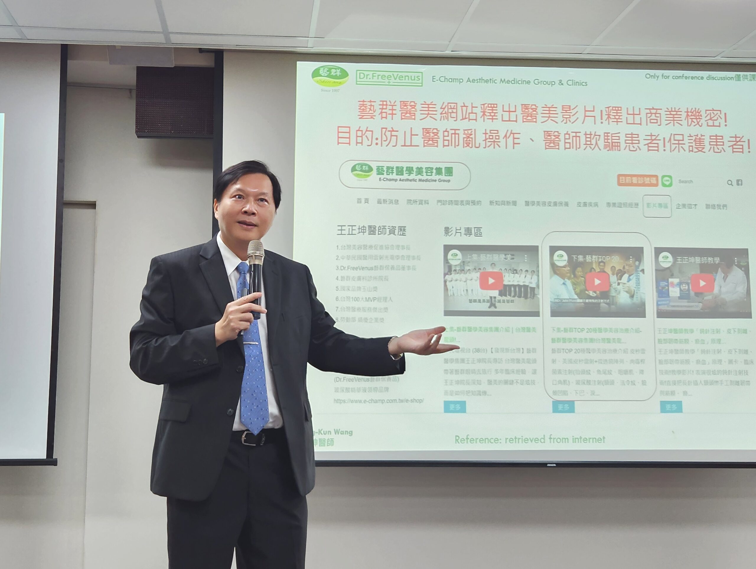 王正坤醫師本身是企管博士與皮膚科專科醫師,現任台灣美容醫療促進協會理事長與藝群醫學美容集團董事長,在長榮大學博士班授課品牌管理與供應鏈管理,在成功大學EMBA企管碩士班授課連鎖品牌經營管理,在成功大學附設醫院授課美容醫學20多年。藝群醫美集團旗下有1家Dr.藝群保養品公司與21家藝群醫美診所分布在台灣各縣市。