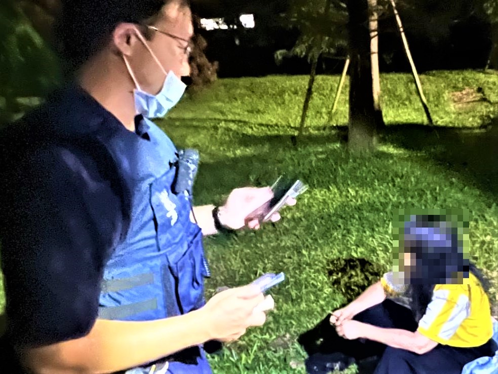 警方上前詢問該名婦人時,婦人言語含糊不清,自言自語,明顯精神狀況不佳,當警方詢問婦人因何故在該處及身分時,婦人也答非所問,在一籌莫展時,周員突然想起當日分局通報的協尋人口與該婦人其特徵相似,經警方比對婦人的衣著、特徵及年籍資料,發現婦人確為被通報協尋的謝姓婦人,警方立刻聯絡報案人前來確認。