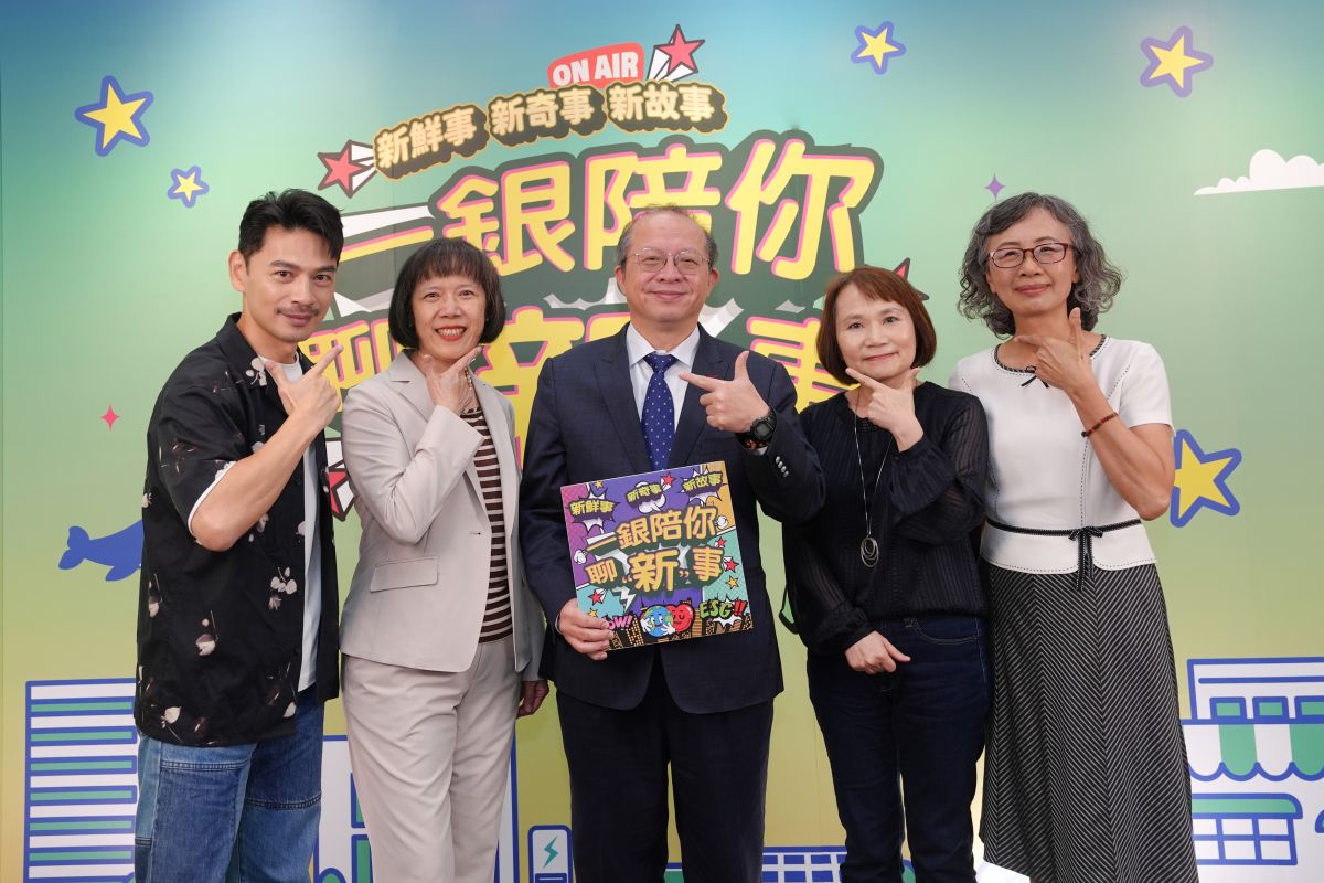 圖/《一銀陪你聊「新」事》Live Podcast 嘉賓合影。主持人阿KEN與莊文貞老師(右二)、健保署林純美組長(右一)同台對談;第一銀行周朝崇總經理(中)、蔡淑慧副總經理(左二)亦出席,共同呼應永續價值。(SoundOn提供)