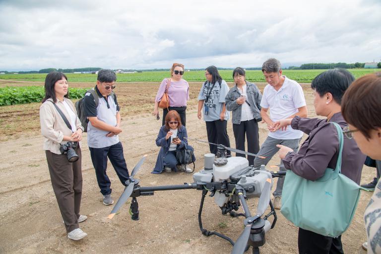農業部分,則參訪福田農場與第21營農集團,去年福田農場成功突破高緯度氣候限制,首次成功種植稻米,為北海道農業創新里程碑。第21營農集團則運用衛星影像與智慧農機,進行馬鈴薯、長芋及川芎等作物的精準管理,讓嘉藥USR團隊與青農楊子賢獲益良多,雙方針也對共生種植與病蟲害防治進行深