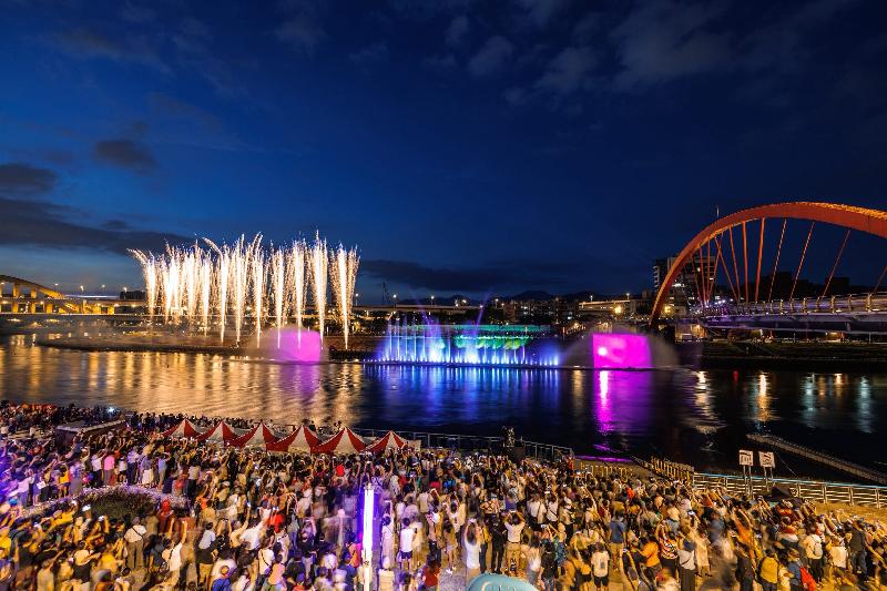 「2025台北水舞嘉年華」(13)日起一連37天在松山錫口碼頭彩虹橋開跑,臺北市長蔣萬安攜手貴賓共同啟動首場水舞展演,當彩虹橋水舞傾瀉而下、基隆河河面120公尺平台同步演出多種色彩水舞秀,加上音樂與特效焰火,呈現出絢麗的「水火共舞」,為37天水舞嘉年華揭開序幕。