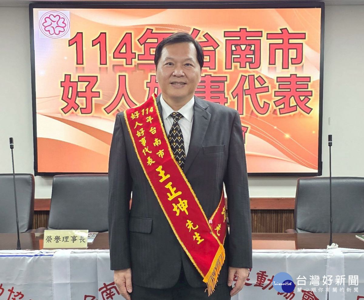 114年台南市「好人好事代表」9月14日舉行頒獎典禮,藝群醫學美容集團董事長王正坤醫師,以其熱心公益、捐助清寒學子及助學興學的善舉,榮獲台南市好人好事代表。