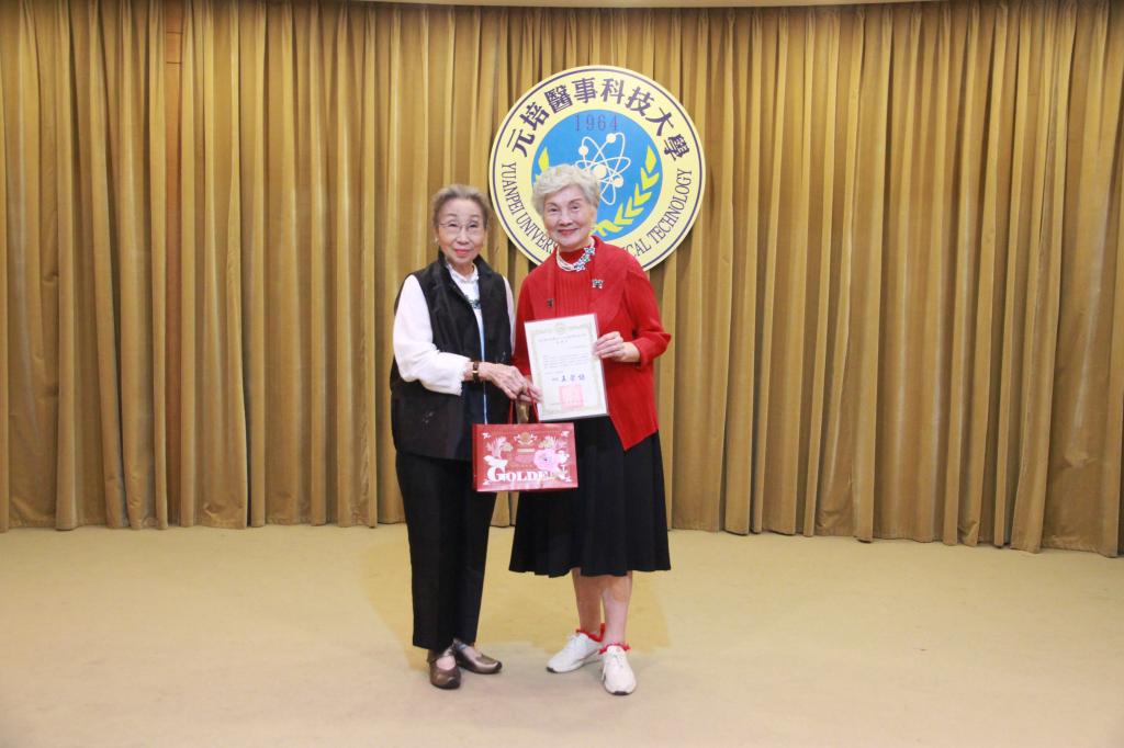 ▲元培醫事科大董事長蔡雅賢(左)致贈感謝狀莊蓮子藝術家。(圖/元培醫事科大提供)
